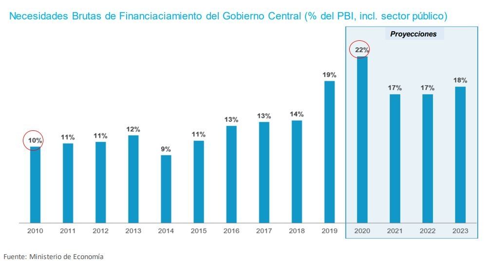 Necesidades de financiamiento: las necesidades brutas de financiamiento (GFN) a lo largo de los últimos 10 años se duplicaron generando desequilibrios que atentan contra la sostenibilidad.