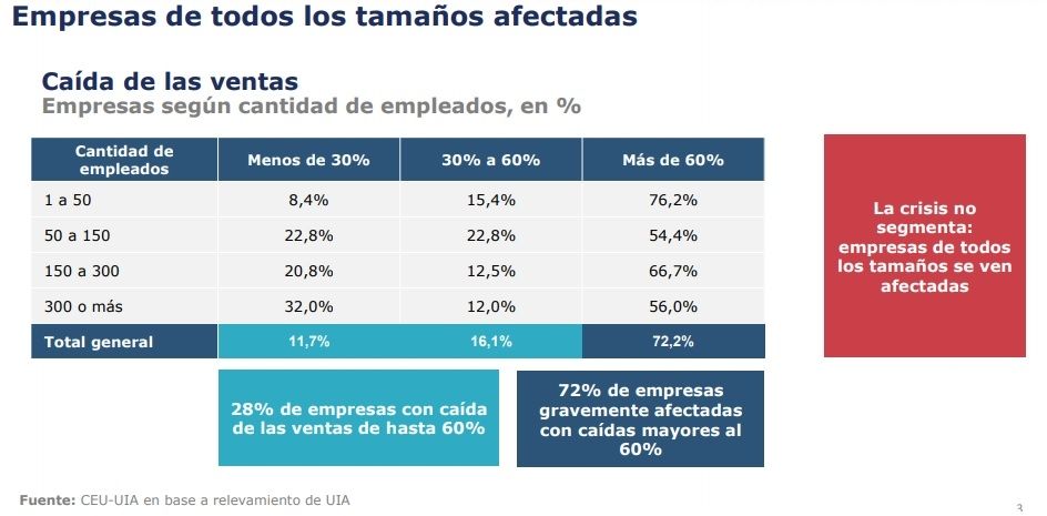 La UIA realizó una encuesta a más de 600 empresas de todo el país para medir el impacto del Covid-19 en la avitidad. Los resultados muestran una delicada situación en la mayoría de ellas.