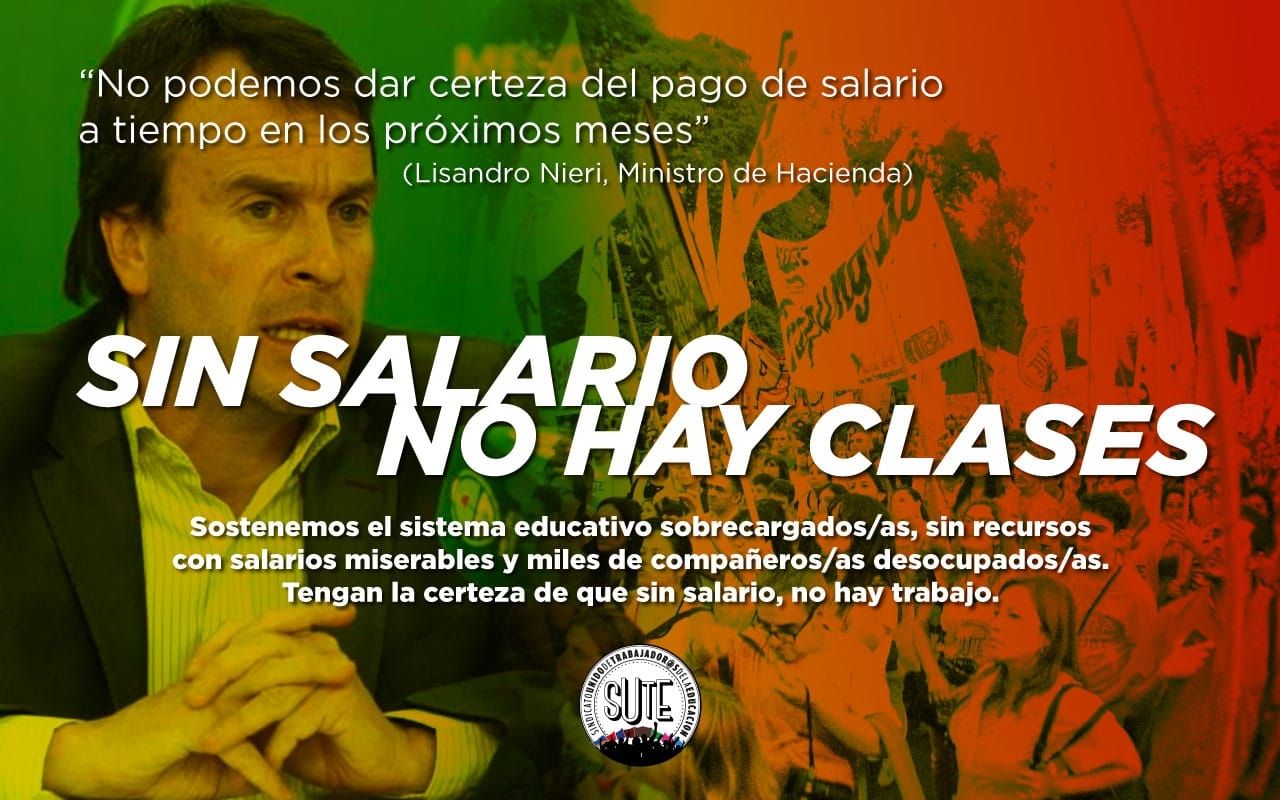 El SUTE a Nieri: "Si no hay salario, no hay clases"
