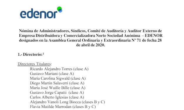 La empresa que opera la red eléctrica en la zona norte de la Ciudad de Buenos Aires y el conurbano comunicó a las 12.39 del miércoles su nueva nómina de autoridades a la Bolsa de Comercio de Buenos Aires (BCBA), al menos 7 horas antes de que le pidieran la renuncia a Vanoli.