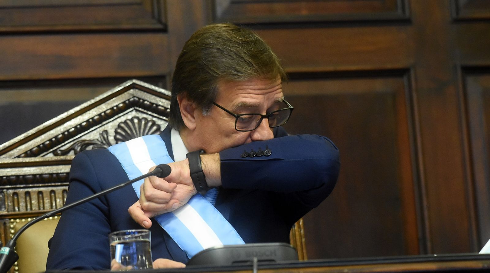 El Gobernador cuidó los detalles durante la asamblea. Por eso tosió en el pliego del codo, como indica el protocolo