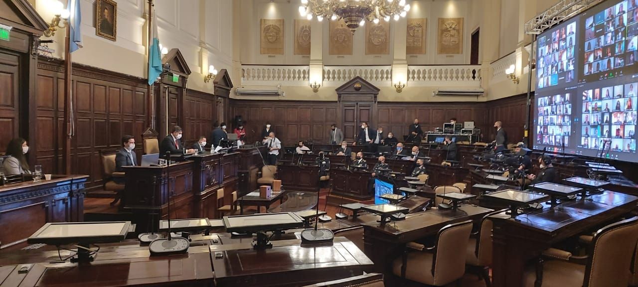 Vacía, así se ve la Legislatura en la previa del discurso de Rodolfo Suarez en la apertura de las sesiones ordinarias. En los últimos días hubo un gran movimiento de personas dedicadas a la parte técnica para garantizar que el acto pueda realizarse de forma virtual y se colocó una enorme pantalla dentro del recinto.