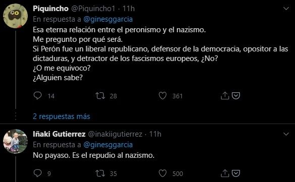 En las respuestas a su mensaje, internautas destacaron los supuestos lazos que unieron al peronismo y al nazismo en las décadas del 40 y 50.