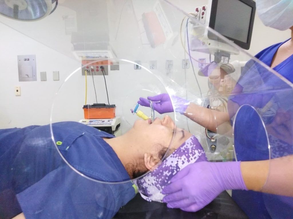 También explicó que "todos los insumos y en especial esta cápsula, es con el único fin de proteger el contacto íntimo que puede tener un paciente con Covid-19 y el médico que va a manipular la vía aérea para poder intubarlo".