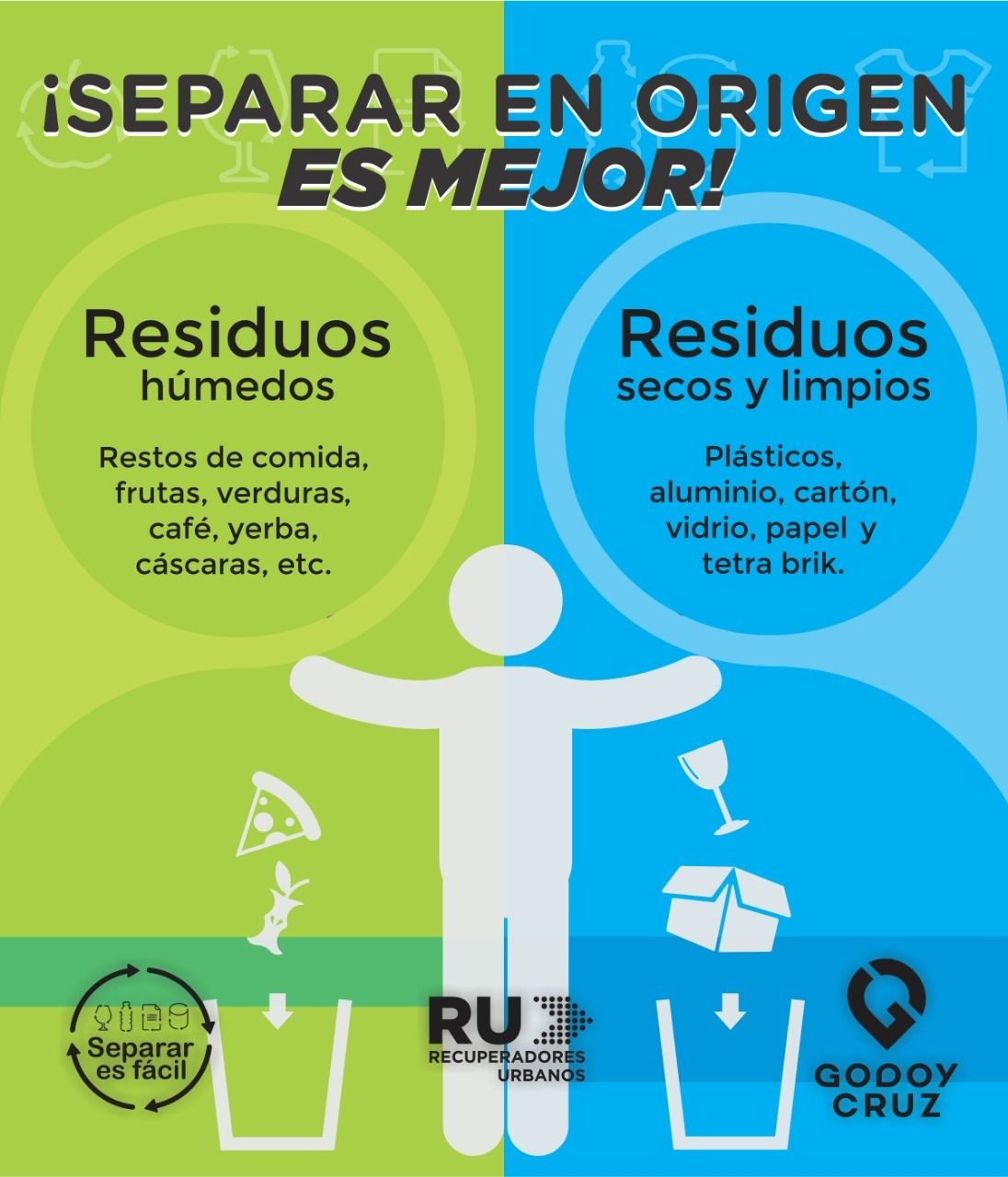 Godoy Cruz arranca hoy con la recolección diferenciada de basura. Los vecinos de este departamento deberán sacar esta noche solamente los secos (papel, cartón, aluminio, PET, plásticos y vidrios y tendrán que dejar los húmedos (restos de comida, fruta, verdura, café, yerba, cáscaras) para otros días.