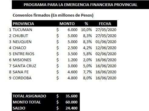 Por otro lado, la Nación también había anunciado en abril el reparto de otros 60 mil millones de pesos en ATN. "Esa distribución es muy lenta y va a todas las provincias", explicaron en Hacienda.