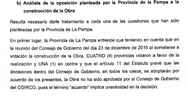 Fue necesario el arbitraje porque el COIRCO exige unanimidad. Macri rechazó el reclamo de La Pampa y avaló la obra. Pero no lo hizo a ciegas. También obligó a Mendoza a escuchar a sus vecinos, a realizar un estudio sobre toda la cuenca y cumplir exigencias ambientales específicas. Allí se pone a prueba la pericia técnica y política de los funcionarios que estaban y se mantienen en el Gobierno. De hecho ese deberá ser el principal respaldo de Rodolfo Suarez en la reunión del 26 de junio.