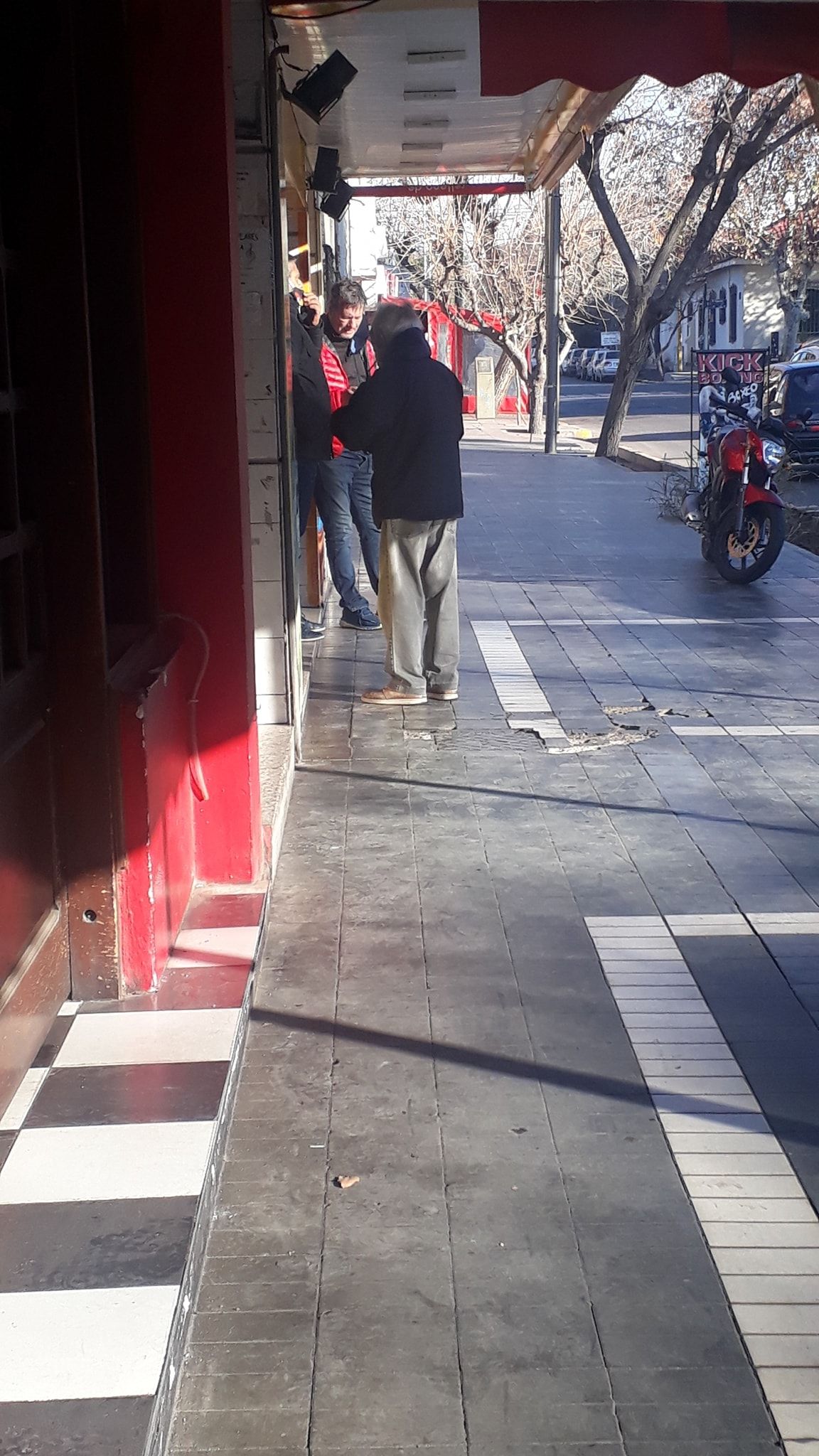 La foto de Alejandro Bermejo fue tomada ayer alrededor de las 10 de la mañana estaba hablando sin distanciamiento social con un adulto mayor y sin usar tapabocas, en la calle Sarmiento. ¡Mal por el ex intendente, que no da el ejemplo!