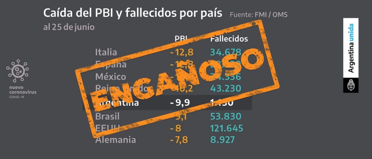 Es engañoso el gráfico que mostró el Presidente sobre la caída del PBI y los fallecidos por país