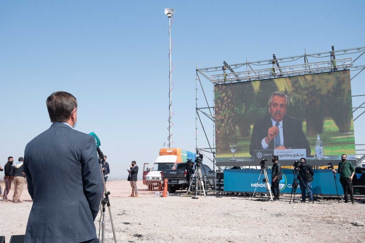 Las declaraciones de Alberto tuvieron lugar en el acto virtual del cual formó parte Rodolfo Suarez desde la obra de la Variante Palmira, ruta que unirá los departamentos de San Martín y Luján de Cuyo y que servirá para evitar que el transporte de cargas ingrese a la zona metropolitana.