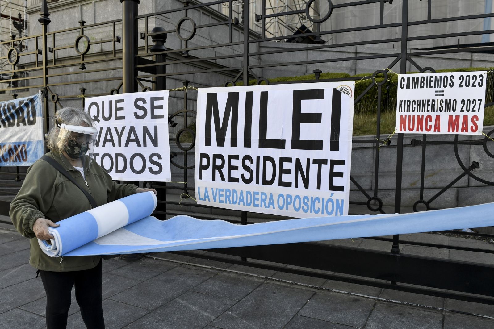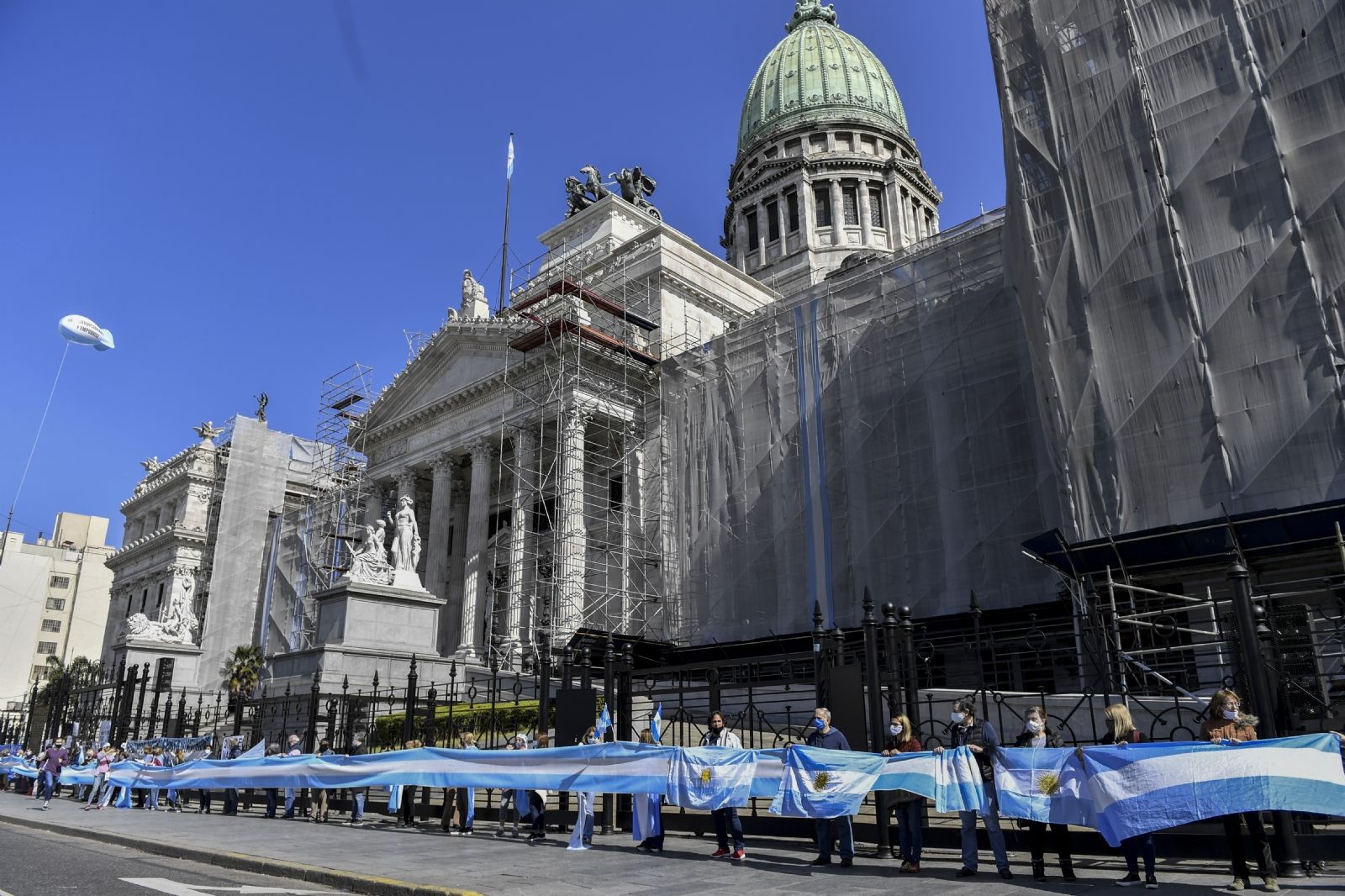 Puertas afuera del Congreso, manifestantes autoconvocados por las redes sociales cumple una vigilia luego de un abrazo simbólico en rechazo a la aprobación de la norma.