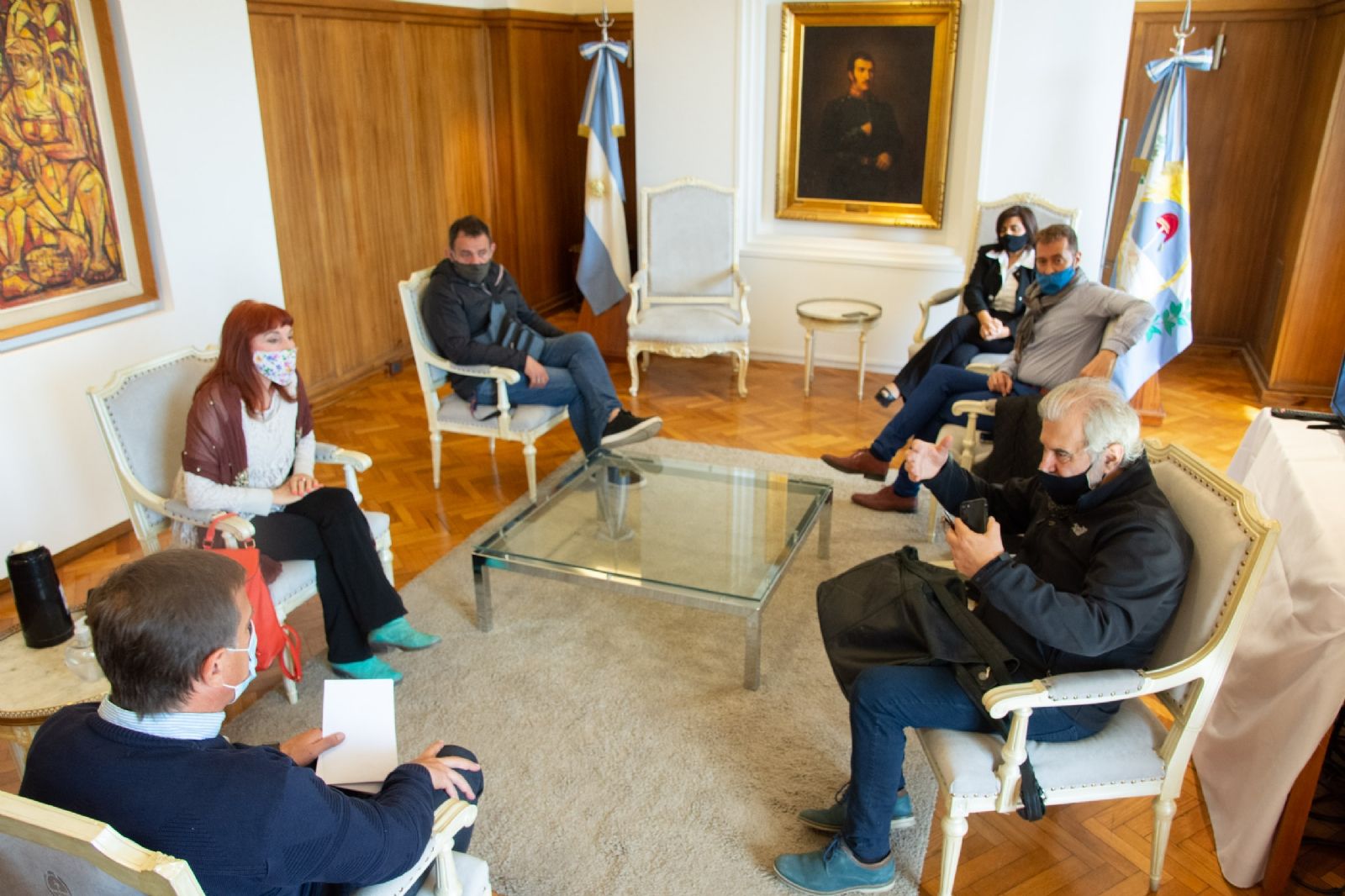 El Gobernador Rodolfo Suarez y la ministra de Cultura y Turismo, Mariana Juri recibieron, en Casa de Gobierno, a hacedores culturales de la provincia. Dialogaron sobre la realidad que el sector atraviesa y abrieron un espacio de charla donde comenzarán a evaluarse alternativas de cara a la próxima Vendimia en el contexto de la pandemia. Estuvieron presentes Alejandro Grigor, Walter Neira, Vilma Rupolo, Pedro Marabini.