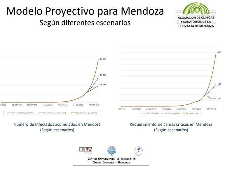 Hasta el viernes el factor "R", es decir la contagiosidad, estaba en 1,83. El ideal es que esté debajo de 1. Los especialistas trazan tres posibles escenarios sobre la tensión sobre el sistema de salud. Por ahora Mendoza está en la curva de una presión "moderada".