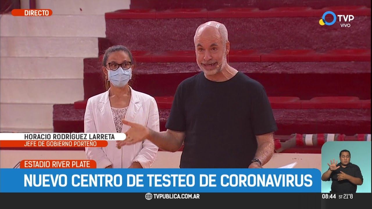 "Somos conscientes de que hay rebrote en la Ciudad y en el mundo, por eso es tan importante que nos cuidemos hoy más que nunca. Es la mejor manera de enfrentar esta situación", dijo Rodríguez Larreta al presentar un nuevo centro de testeos en el estadio del club River Plate en el barrio porteño de Núñez, junto al vicejefe Diego Santilli y al presidente de la institución, Rodolfo D'Onofrio.