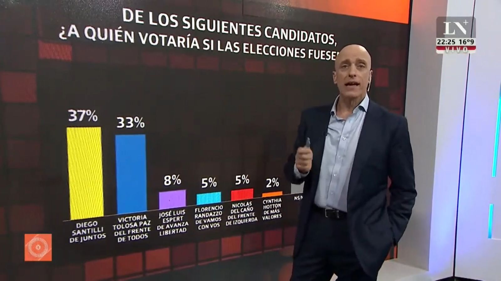 De todas formas, Pagni destacó dos puntos importantes: la lista encabezada por Diego Santilli está 0,9 puntos por debajo de lo que sacó Juntos por el Cambio en conjunto en las PASO, pero todavía "retiene bastante el voto que consiguió Facundo Manes" en la interna. Por su parte, la lista de Victoria Tolosa Paz y compañía pierde 0,6 puntos de lo que tuvo en las primarias. Por el contrario, José Luis Espert pega el estirón y sube más de tres puntos.
