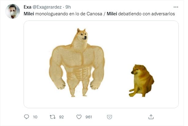 En las redes, sociales hubo una reacción inmediata sobre la imagen que dejó Javier Milei en el debate y no faltaron los memes.