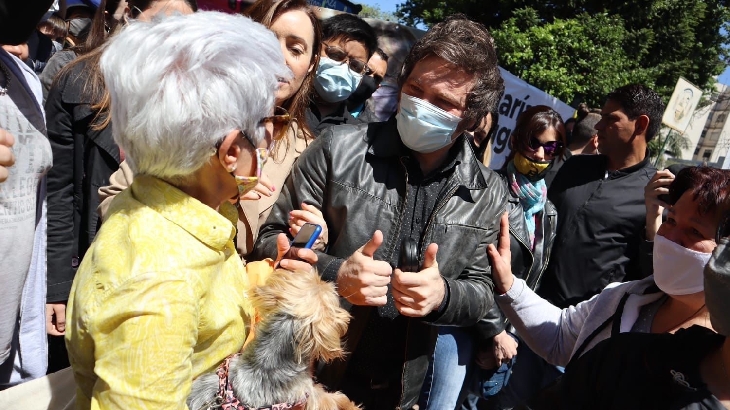 Al iniciar su caminata, dos señoras lo pararon: “Javi, nosotras te votamos. Es más, ella le va a hacer a su perra Eva un colgante con tu cara”. Su amiga, a su vez, le dijo: “Nosotras ya estamos grandes, pero nos das esperanzas para la Argentina que queda. Te deseo mucha suerte”. Ante eso, Miliei respondió que “trataremos de ganarles a los colectivistas de buenos modales que gobiernan en la Ciudad”.