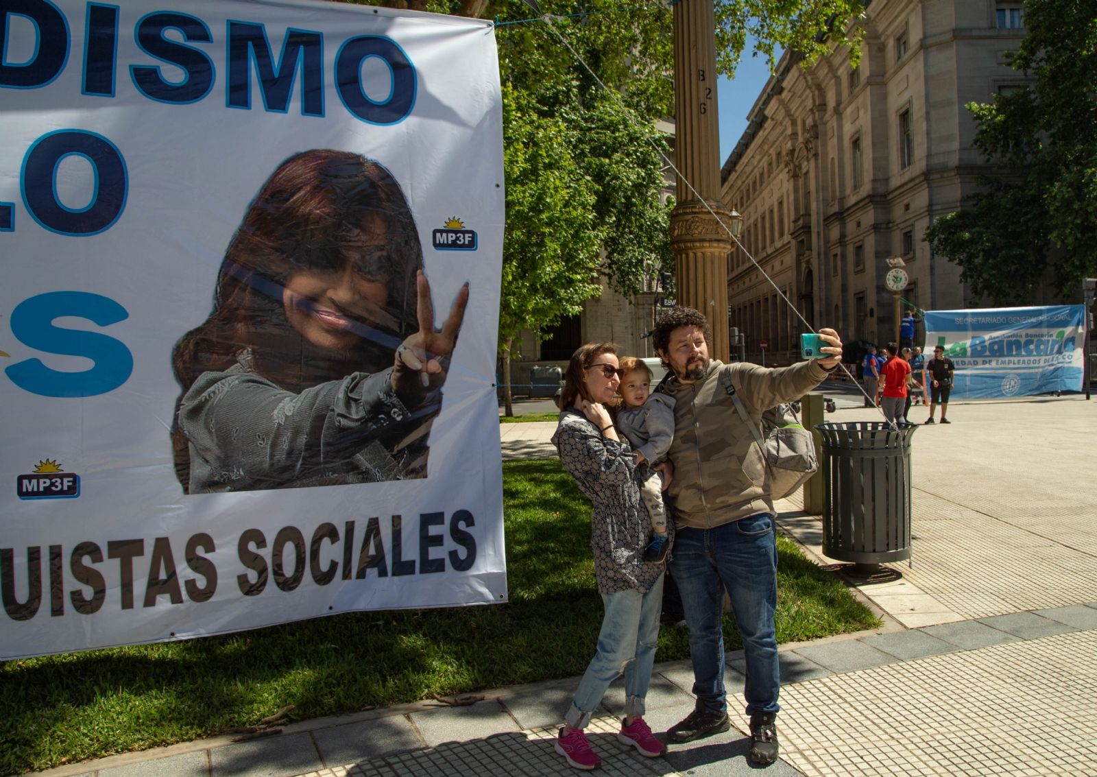 Bajo la consigna "Todos unidos triunfaremos", militantes autoconvocados fueron los primeros en llegar al centro porteño, con banderas y carteles con consignas a favor del Gobierno, y esperan al comienzo del acto que está previsto para las 17, y será transmitido por las redes sociales del Frente de Todos.