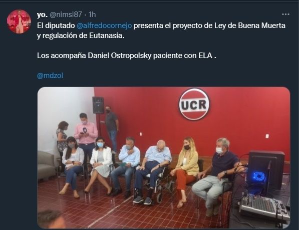 En el comité radical de la provincia de Mendoza el diputado Alfredo Cornejo, acompañado por la diputada Jimena Latorre, presentaron un proyecto denominado: "Buena Muerte". El objetivo fundamental que tiene es regular el derecho de terminar con su vida a aquellas personas que padecen enfermedades incurables. Se aplicaría en algunos casos específicos.