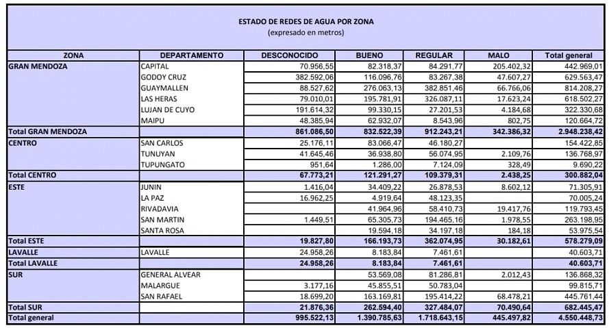 Hoy Mendoza gasta el doble pagando a Irrigación por el agua cruda, gastando el doble en insumos químicos para potabilizar, el doble en energía eléctrica para realizar el bombeo y poder luego distribuirla; y en la parte del personal necesario para potabilizar en las plantas pero también los operarios necesarios para arreglar cada rotura por pérdidas.