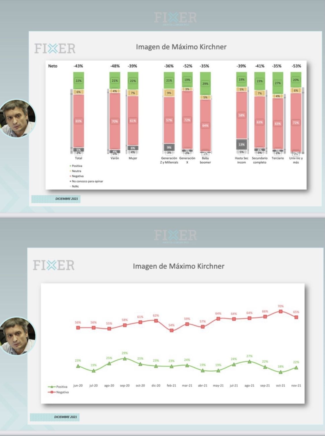 Paradójicamente, Cristina Fernández de Kirchner logró transferirle a Máximo su alta imagen negativa para colocarse ambos en el podio de baja popularidad que exhiben las principales figuras del Frente de Todos. Según la última encuesta de la consultora Fixer, los principales referentes del oficialismo mantienen diferencial neto negativo, generan más rechazos que adhesiones, todo lo contrario, a lo que ocurre con los de Juntos por el Cambio.