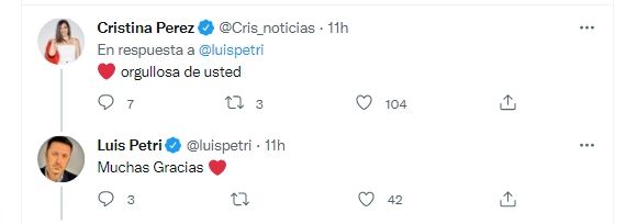 A través de las redes sociales el mendocino Luis Petri se despidió de la Cámara de Diputados pero lo hizo dejando claro que tiene una ambición en mente: ser gobernador de Mendoza. Así lo expresa en un video que recibió un sentido comentario de su pareja, la periodista de Telefé Cristina Pérez. "Orgullosa de usted", escribió la conductora televisiva con un emoji de corazón.