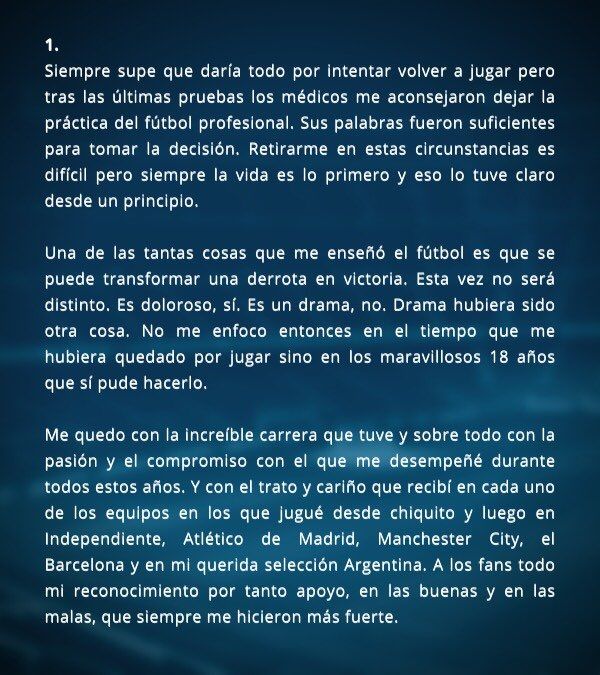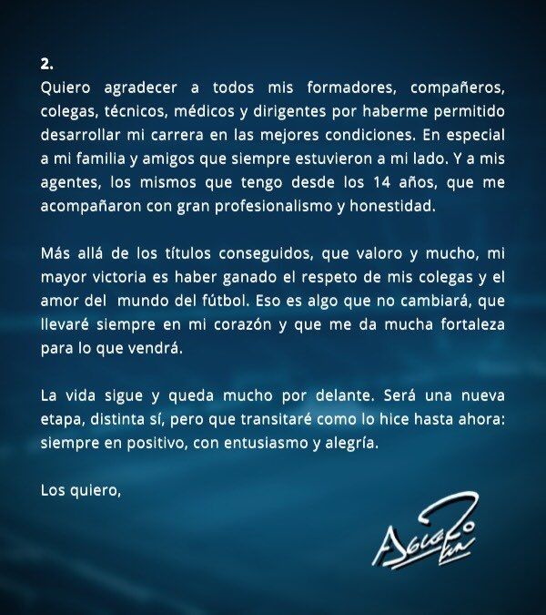 Cabe destacar que el exjugador ya presentó un comunicado en sus redes sociales, que se suma a la triste despedida de la que fue su profesión por casi 20 años. En este destaca que: "La vida sigue y queda mucho por delante. Será una nueva etapa, distinta sí, pero que transitaré como lo hice hasta ahora: siempre en positivo, con entusiasmo y alegría".