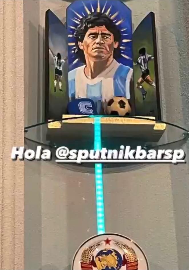 El bar fue puesto a todo lujo, no se les escapó ningún detalle. Abundan caricaturas, al mejor estilo de la Rusia comunista, entre las que se destacan una enfermera vacunando a un hombre y la Casa Rosada, sobrevolada por palomas blancas que rodean al covid. Hasta cuenta con un altar de Diego Armando Maradona.