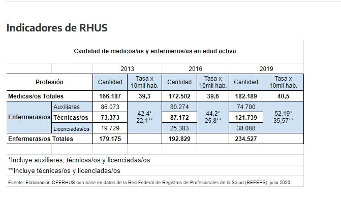 Como en todos los países, los profesionales de la medicina son los primeros que deben ser vacunados, junto a personas mayores de 60. En líneas generales, y según un estudio publicado por Eurostat, Argentina cuenta con 400 profesionales de la salud por cada 100 mil habitantes. Un promedio de casi 300 profesionales de la salud en todo el país. Al 13 de enero, el gobierno anunciaba que "las jurisdicciones reportaron que ya se aplicaron 166.833 dosis de la vacuna contra la COVID-19. En paralelo es importante continuar con las medidas de prevención ante el aumento sostenido de casos". En resumen, ni siquiera la mitad del personal sanitario, que ha sido, además, el más sacrificado durante toda la pandemia.