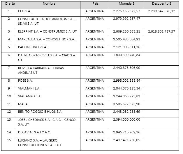 El pliego original establecía exigencias financieras que estaban lejos del alcance de las empresas locales. Entre ellas tener un Patrimonio Neto de 600 millones de pesos. Desde las cámaras de la construcción reclamaron para flexibilizar las exigencias y ocurrió. Por eso participaron 15 empresas y UTE'S, incluidas algunas mendocinas como CEOSA, Obras Andinas, Genco, y Laugero. Pero en la recta final, las que mejor oferta presentaron quedaron descalificadas varias por temas similares. La empresa Dafre, que realizó el primer tramo de la ruta 82, fue la que mejor oferta económica presentó, pero fue descalificada.