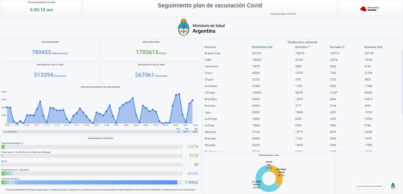 Concretamente, quien acceda podrá conocer cuántas dosis han sido distribuidas en las provincias y cuántas de ellas han sido aplicadas en primera o segundas dosis. Según informaron, prevé incorporar información relativa a nuevas vacunas que ingresen al país junto con los datos de sus laboratorios y países de procedencia.