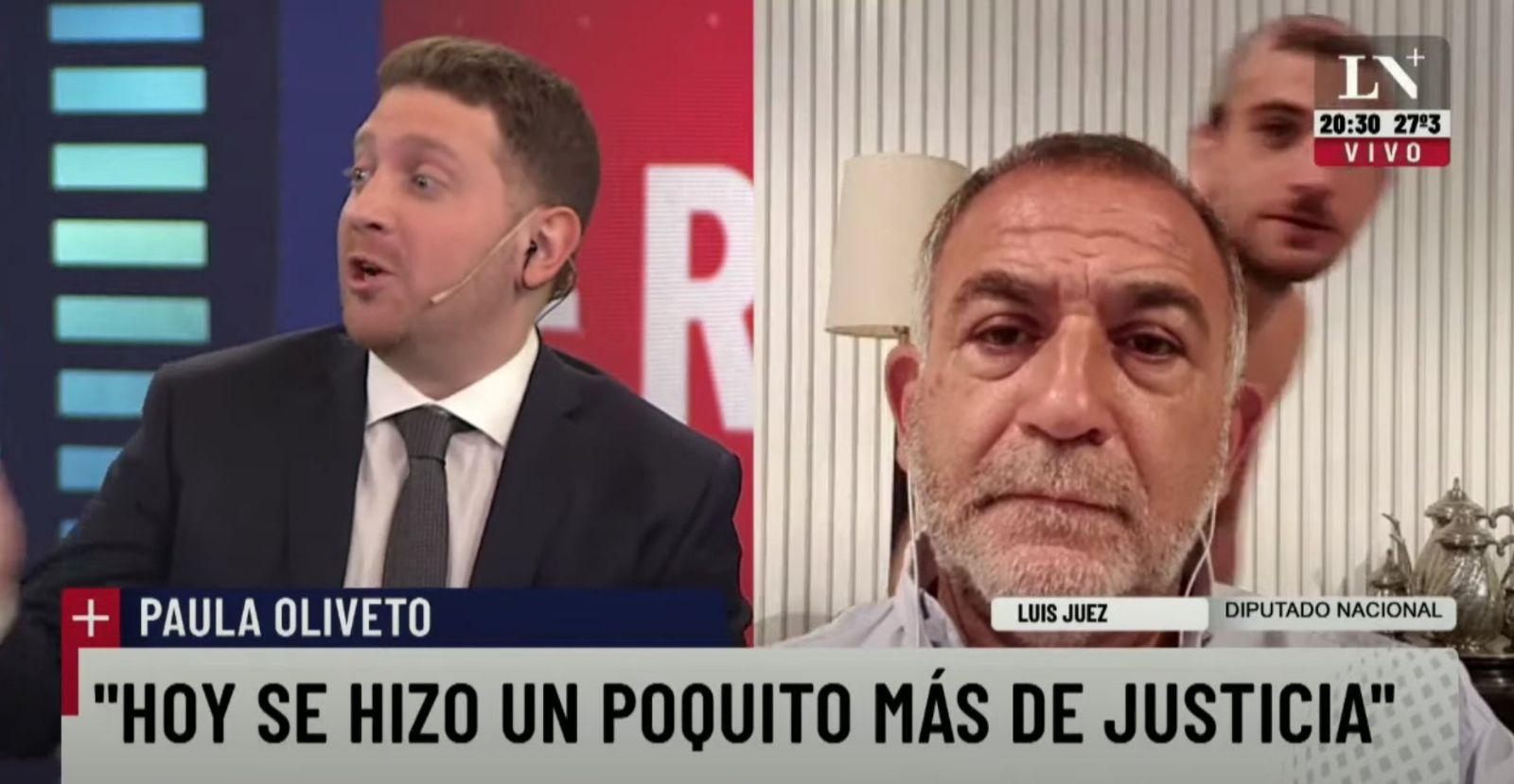 "Les juro que esto pasó al aire", bromeó el periodista Jonathan Viale en las redes sociales y compartió las imágenes de la entrevista que realizaba a los legisladores Paula Oliveto y Luis Juez. En medio de la charla se puede ver como un joven semidesnudo pasa caminando detrás del diputado nacional cordobés.