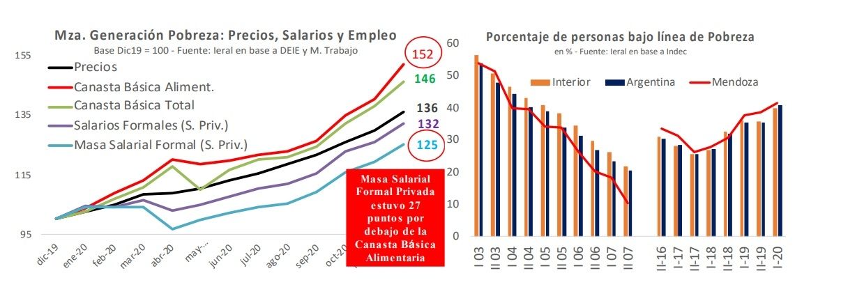 Al escarbar en los datos, hay indicadores que pueden dejar una marca estructural. Uno de ellos es el desempleo y la pobreza, datos que están camuflados. "A pesar que en Mendoza el empleo total cayó menos que a nivel nacional, en el sector privado formal, la cantidad de puestos laborales y sus salarios tuvieron contracciones mayores. De esta forma, la caída en la masa salarial en este último sector terminó siendo muy importante. Este hecho, sumado al elevado aumento en los precios de la canasta básica de Alimentos, contribuyeron a un nuevo y muy preocupante incremento en los indicadores de pobreza de la provincia", dice el informe. Si se ahonda en los sectores, el diagnóstico es más preocupante por el impacto que tiene la crisis en sectores que agregan valor y recursos (como la industria petrolera) y otros que son de mano de obra intensiva y dinamizadores, como el comercio,