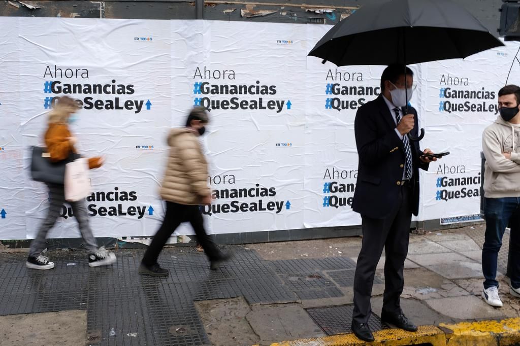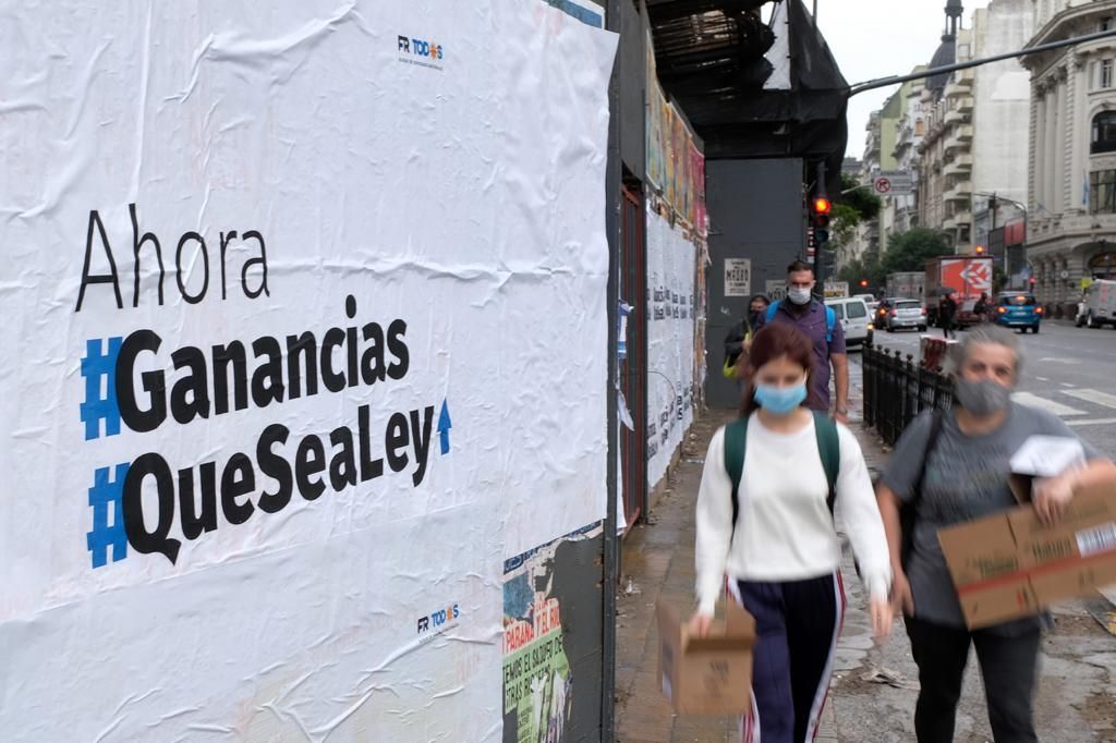 "Ahora Ganancias. Que sea ley", dicen los afiches que se pueden ver en la puerta del Congreso de la Nación o en el Obelisco.