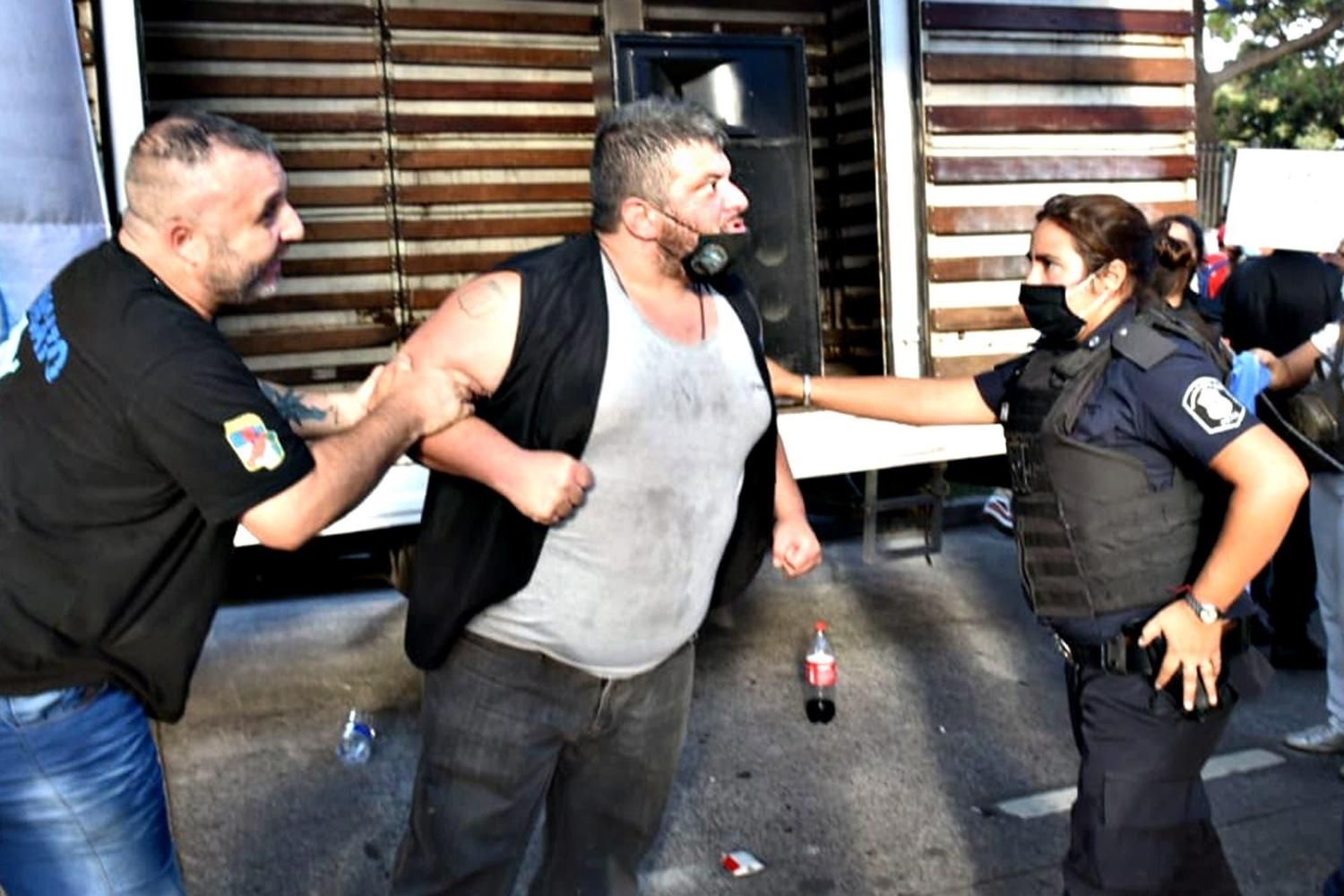 Un grupo de gremialistas se había apostado desde temprano en el lugar y atacaron a trompadas a los manifestantes que protestaban contra el Gobierno. Las imágenes se viralizaron en redes sociales y generaron repudio a raíz de que los agredidos eran adultos mayores que se manifestaban pacíficamente en el lugar. Entre los agresores había varias personas con remeras de la CGT y afiliados al sindicato de fleteros.