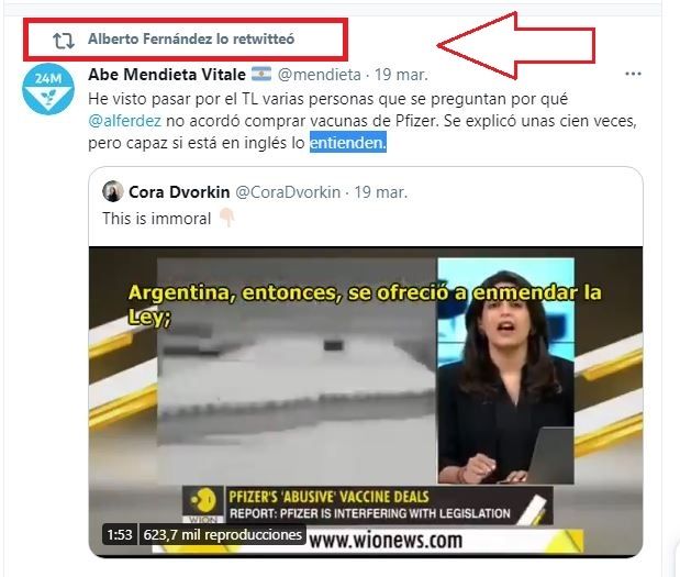 En los últimos días, a través de las redes sociales, diferentes usuarios han compartido un video en el que una periodista de WIOM (World is One News), un canal de noticias en inglés con sede en Nueva Delhi, capital de la India, realiza una seria denuncia contra Pfizer por su supuesto "enfrentamiento" con la Argentina.