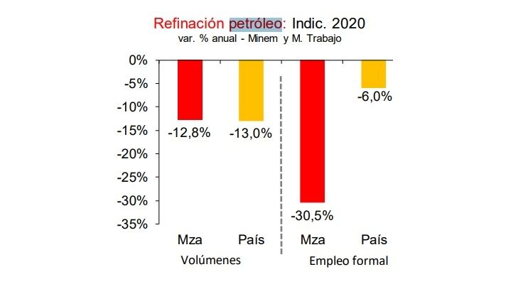 La pandemia dejó un escenario dramático para la industria petrolera por la caída en la demanda y la recuperación no llega. Aún en los meses de casi plena actividad, esa industria que es clave para Mendoza sigue en caída. Si el sector está en problemas en Argentina, en Mendoza se potencia: la caída de empleos en la industria petrolera se multiplica hasta por 5 en Mendoza y la decadencia en la producción es mayor de lo que ocurrió en otras provincias petroleras.
