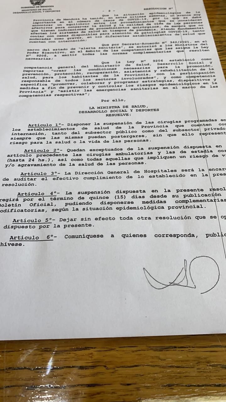 La suspensión rige por 15 días desde la publicación en el Boletín Oficial y sólo quedan exceptuadas de esta resolución las cirugías ambulatorias o las de estadía corta (hasta 24 horas).