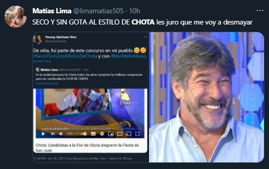 "Estoy riéndome hace 20 minutos pensando en que cuando sube mucho la delincuencia deben pedir mano dura en Chota", se sumo a las burlas otra usuaria de Twitter.