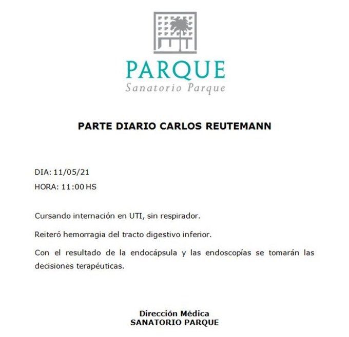 El senador nacional por Santa Fe, Carlos Alberto Reutemann, continúa internado en terapia intensiva en un sanatorio de Rosario con un "cuadro inestable por las características de la enfermedad", una hemorragia digestiva, pero con un estado general bueno, informaron fuentes sanitarias.