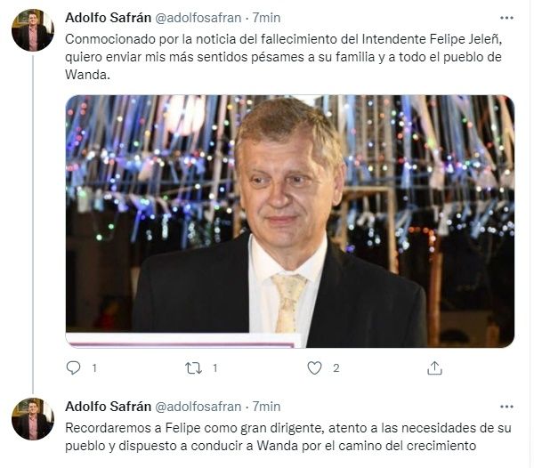 Jeleñ tenía 64 años y había sido diagnosticado con la enfermedad el pasado 30 de abril. Sin embargo, recién se informó sobre su enfermedad el 9 de mayo luego de que los vecinos de Colonia Wanda publicaran un pedido de oración por la pronta recuperación del jefe comunal.