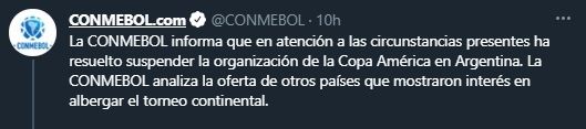 Luego de que la Conmebol anunciara el domingo a la noche que la Copa América no se disputará en Argentina, el jefe de Gabinete, Santiago Cafiero, salió a explicar las razones por las cuales el torneo continental no se disputará en el país.