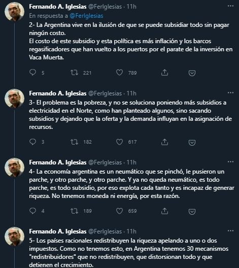 Y agregó: "La Argentina vive en la ilusión de que se puede subsidiar todo sin pagar ningún costo. El costo de este subsidio y esta política es más inflación y los barcos regasificadores que han vuelto a los puertos por el parate de la inversión en Vaca Muerta".