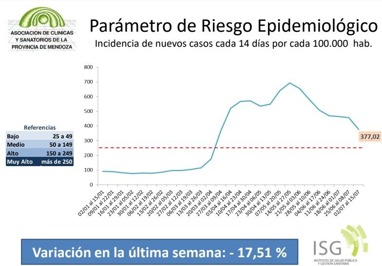 En el país, y en Mendoza en particular, hay una curva descendente de contagios. Se nota en los casos de covid diagnosticados cada día (en una semana hubo 1000 casos menos) y en lo que indica el "factor R", es decir la cantidad de personas a las que alguien enfermo le transmite el virus. Hoy ese indicador está en 0,90. Desde fines de enero que no estaba en un valor tan bajo. Las ocupación de camas de terapia intensiva en toda la provincia rompió la barrera del 70%. Pero el impacto aún no es tan significativo en la cantidad de fallecidos, que si bien ha bajado, sigue siendo alto. Otro indicador que mejoró es la positividad, que bajó del 30%.