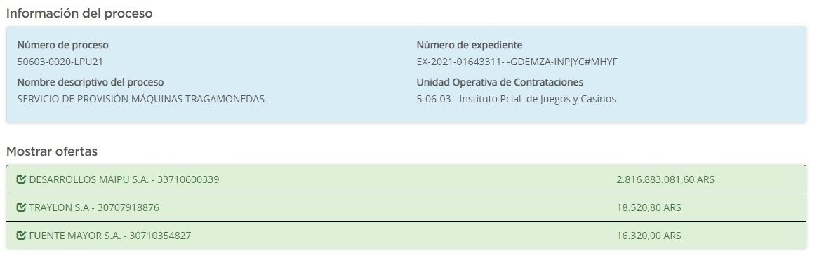 El tercer postulante para es Fuentemayor. Esa empresa ofrece también instalar los 900 tragamonedas, un hotel, espacio para un centro médico. Esa empresa ya explota un casino privado en el Valle de Uco.