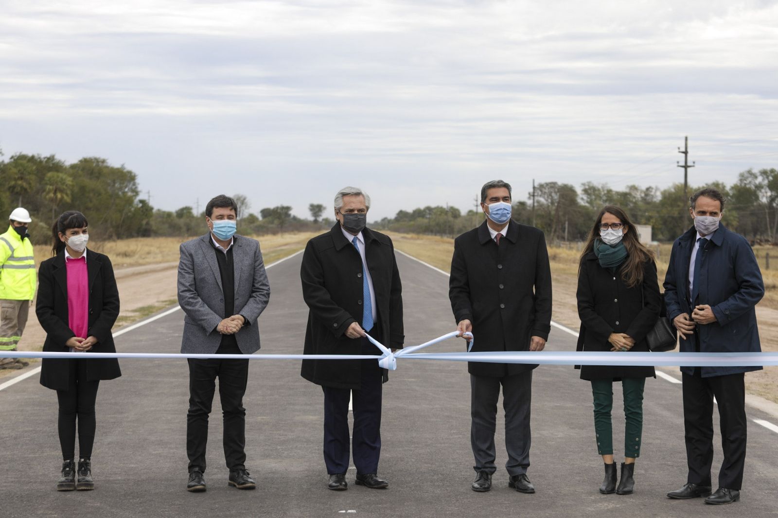 El mandatario estuvo acompañado por los ministros del Interior, Eduardo de Pedro; de Obras Públicas, Gabriel Katopodis; de Desarrollo Social, Daniel Arroyo; y de Mujeres, Géneros y Diversidad, Elizabeth Gómez Alcorta; y el gobernador Jorge Capitanich.