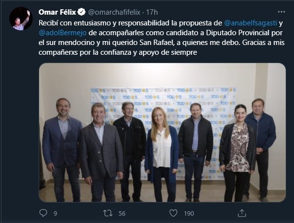 Por el momento, más allá de Anabel Fernández Sagasti, que encabeza la lista como senadora nacional y Adolfo Bermejo como diputado nacional. En la provincia se menciona que José Luis Ramón será candidato a legislador provincial por el Primer Distrito y en las últimas horas se conoció que Omar Félix, actual legislador nacional, irá en una lista para la Casa de las Leyes de Mendoza.