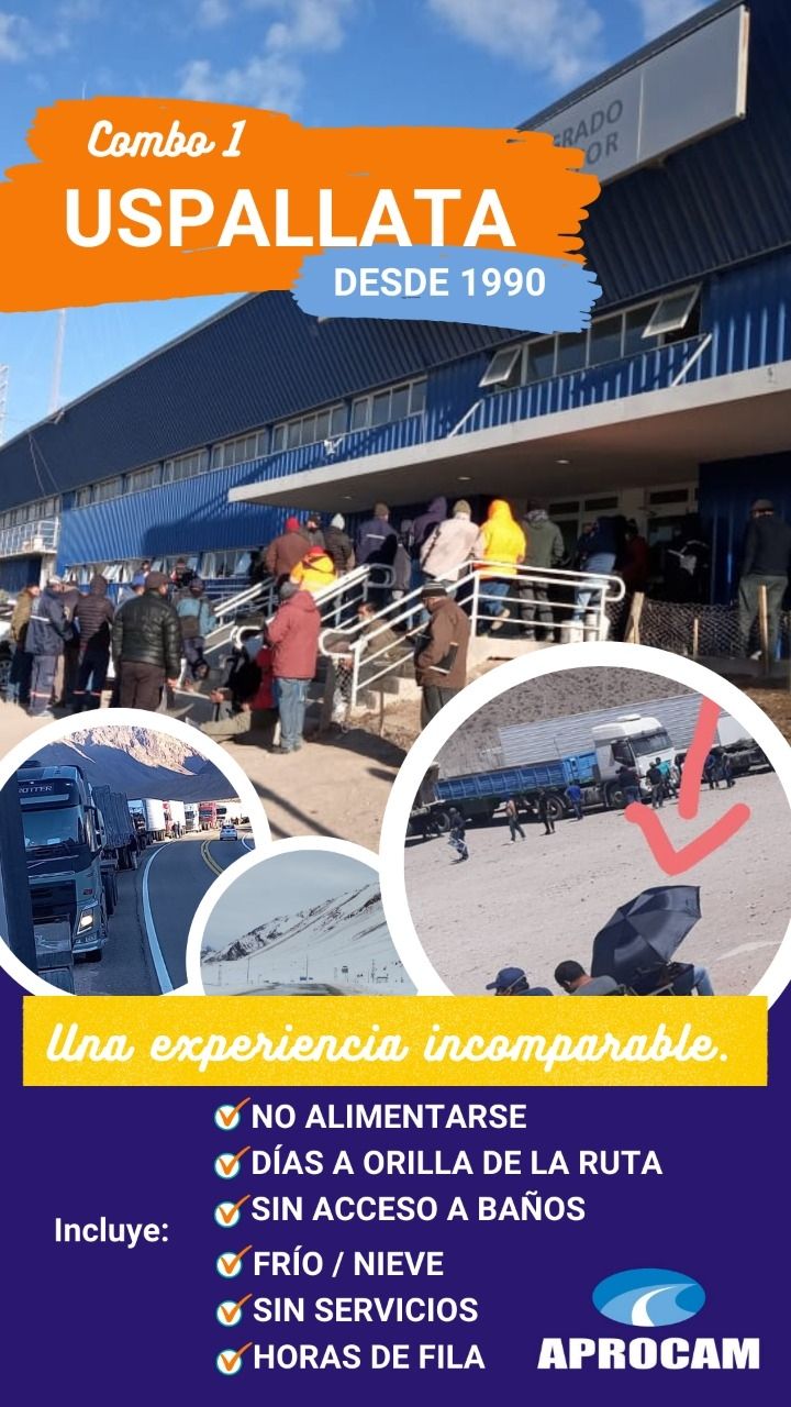 Tres "combos" se han dado a conocer desde APROCAM de una manera irónica para que la sociedad conozca como viven los choferes de carga. "Tomándolo con humor podemos decir que es un fin de semana distinto. Una alternativa para conocer la montaña", describió con sarcasmo Messina.