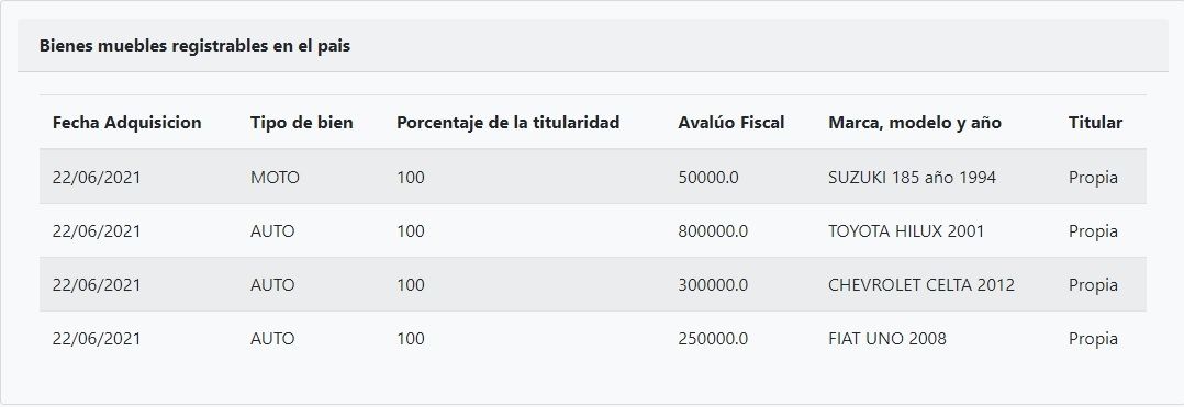 - Martín Caín, Gremio de casinos, declara dos vehículos. Chevrolet fun 1.0/2006 valuado en $300000 y una Toyota, Corolla XEI, 2017 por $1255000.