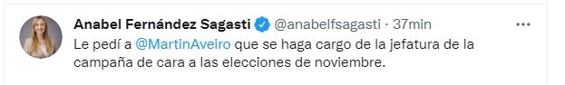 Aveiro es candidato a senador nacional en segundo término, por detrás de la cabeza de lista Anabel Fernández Sagasti. La senadora nacional protegida de Cristina Fernández de Kirchner va por la reelección pero el resultado del domingo encendió las alarmas y obligó a recalcular la estrategia.